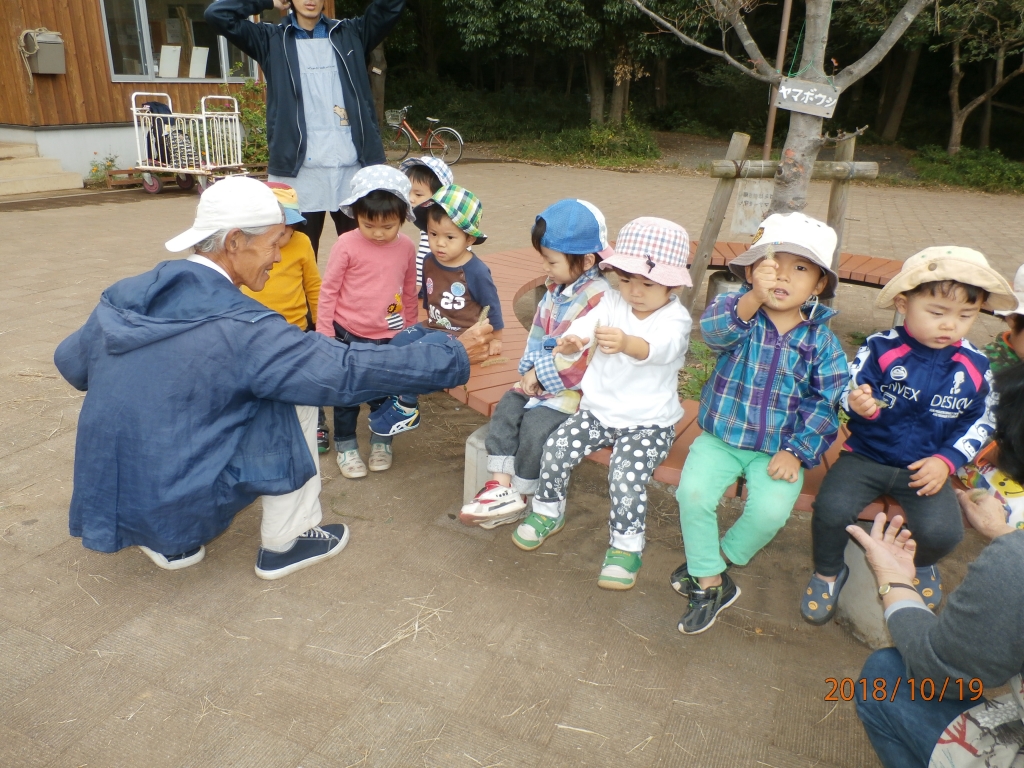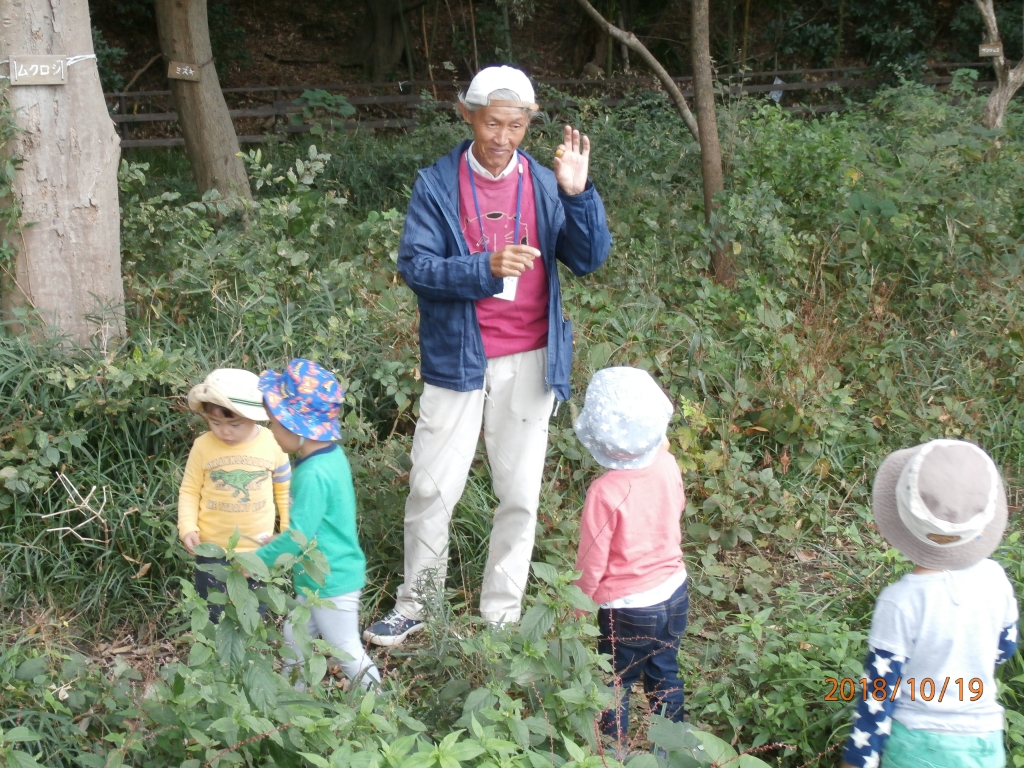 2歳児を中心に城山公園で国立桜守の大谷和彦先生と自然の中であそびました。不思議な発見などもあり、みんな楽しんでいました。
