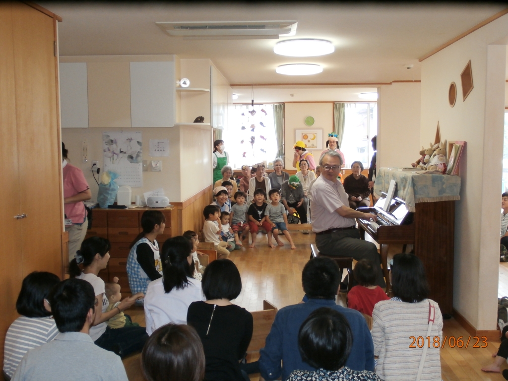 今回はお隣の老人ホームの方々もお招きして楽しい会となりました。