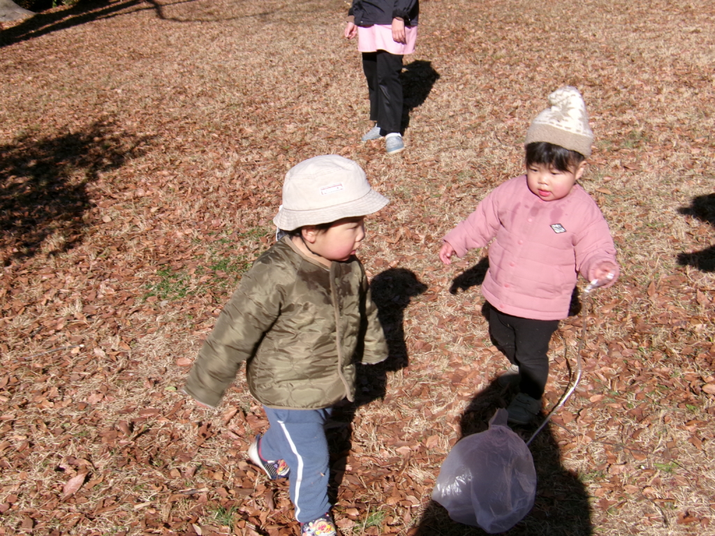 子どもたちはおおむね元気!寒い風が吹く日でも「オサンポイコー!」と玄関で張り切っています。
